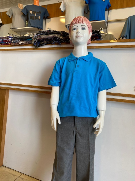 1. Mavi renk polo yakalı, kısa veya uzun kollu (uzun kollu ise kol ucu manşetli), pamuklu, yünlü, keten vb. doğal ve sağlıklı kumaşlardan üretilmiş tişört.